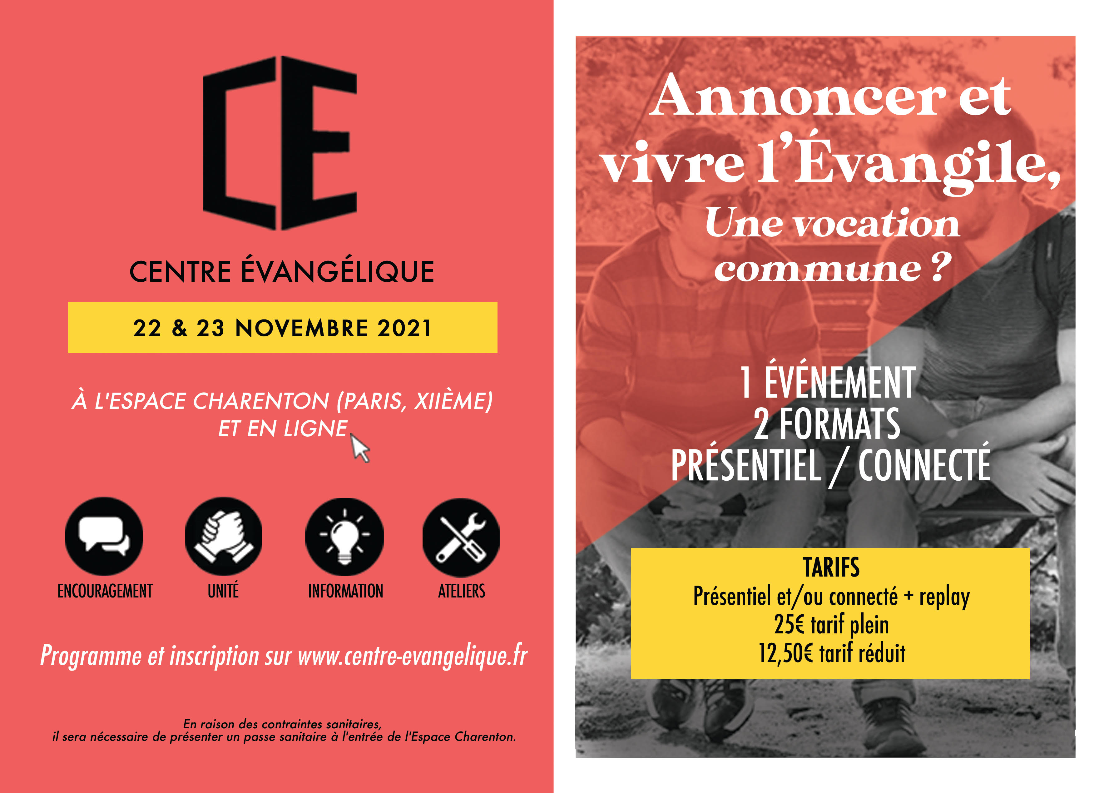 Vous avez RDV les 22 et 23 novembre prochains à l'Espace Charenton à Paris (XIIème) ou en ligne pour vivre cette édition autour de la thématique " Annoncer et vivre l'Évangile, une vocation commune ? "